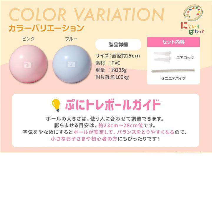 「すぐに使える。セット内容」バランスボール本体x1、空気入れポンプメ1、エアロックx2、空気抜きx1/ぷにトレボール本体x1、ミニエアパイプX1、エアロックX2「カラー」ブルーセット