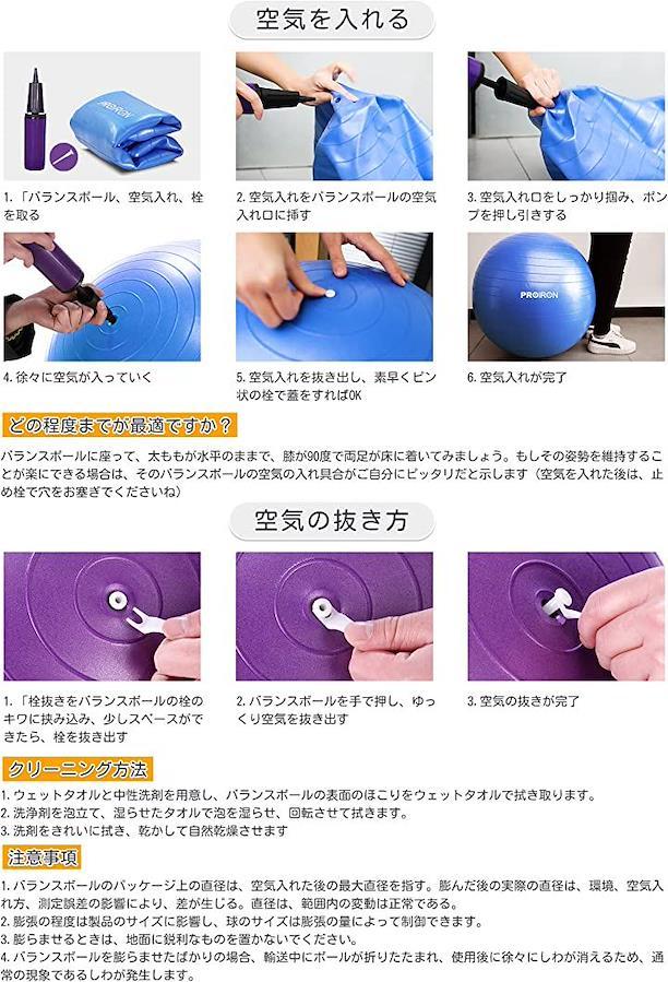パッケージ内容:バランスボールx1ハンドポンプx1止め栓x1フォークx1バランスボールの正しい空気の入れ方: