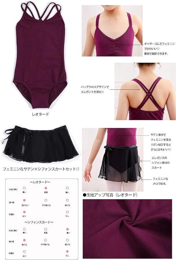 レオタードだけでも、スカートと一緒でも用途によって2wayで使い回しができますので便利です。