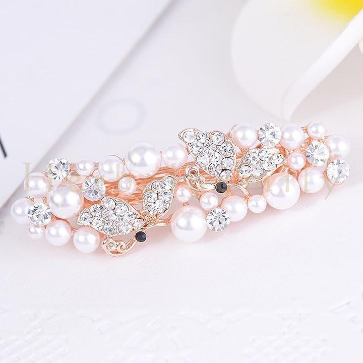 女性らしさを引き立てるピンクゴールドベースのヘアクリップ。