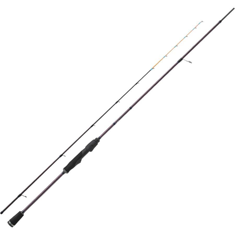 バチコンモデル ●底が40m程度、シンカー20号までを使用するエリアに最適。●ショートレングスなので船上で取り回しも容易。●繊細なカーボンソリッドを搭載し視認性と手感度にも優れ、アジの吸い込むアタリを捉えフッキングに持ち込めます。