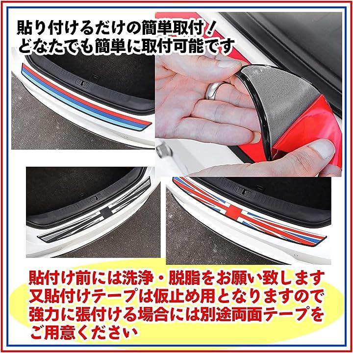 リアラゲッジルームのバンパーステップ部に貼り付けるだけの簡単取付け(貼付け前には洗浄、脱脂をお願い致します、又貼付けテープは仮止め用となりますので、強力に張付ける場合には別途両面テープをご用意ください)お荷物の積み込み時にもキズを気にせず作業ができます。