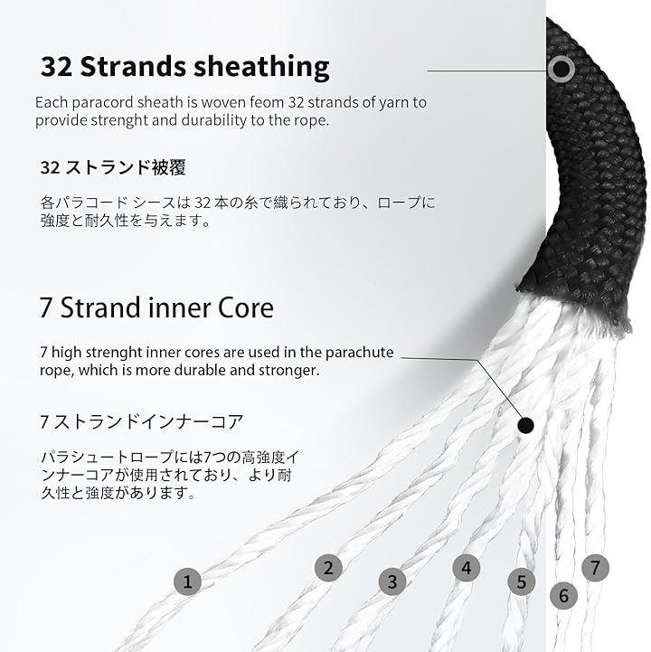 内部コアには合計 7 本のストランドがあり、110 ポンドの重力に耐えることができます。