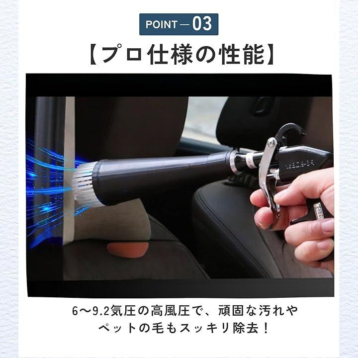 「プロ仕様の性能」6~9.2気圧の高風圧で、頑固な汚れやペットの毛もスッキリ除去。