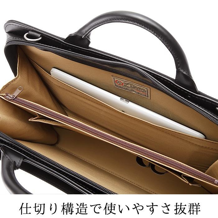 ◆ 通常より張りがありシワになりにくい強撚糸ナイロンで作られたビジネスバッグ!◆ 取っ手は牛革を使用することで手に馴染みやすく高級感を演出!◆ メインルームのファスナーは「コ」の字型に大きく開き、収納ポケットも充実。◆ 快適な使用感と収納力でハードなビジネスライフをサポート!