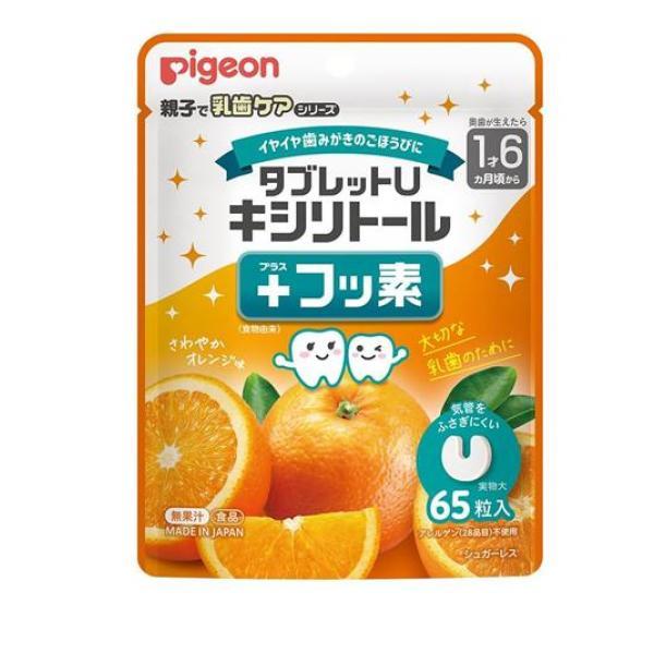 製品の特徴●ピジョン タブレットU キシリトール+(プラス)フッ素 さわやかオレンジ味●イヤイヤ歯みがきのごほうびに。●大切な乳歯のために。●奥歯が生えたら・1才6ヵ月頃から。●歯みがきが苦手なお子さまの「がんばる気持ち」を応援します。●キシリトールとフッ素の量はお子さま向けに調整しています。●誤って飲み込んだ場合でも、気管をふさぎにくいU字型。●お口の中で酸を作らないキシリトール(甘味料)配合。●緑茶エキスパウダー由来のフッ素を配合。●アレルゲン(28品目)不使用・シュガーレス。●無果汁。●歯磨き後に、おやすみ前に、おでかけ時に、食事・おやつの後に。●品名:キシリトール含有食品●内容量:37g(65粒)