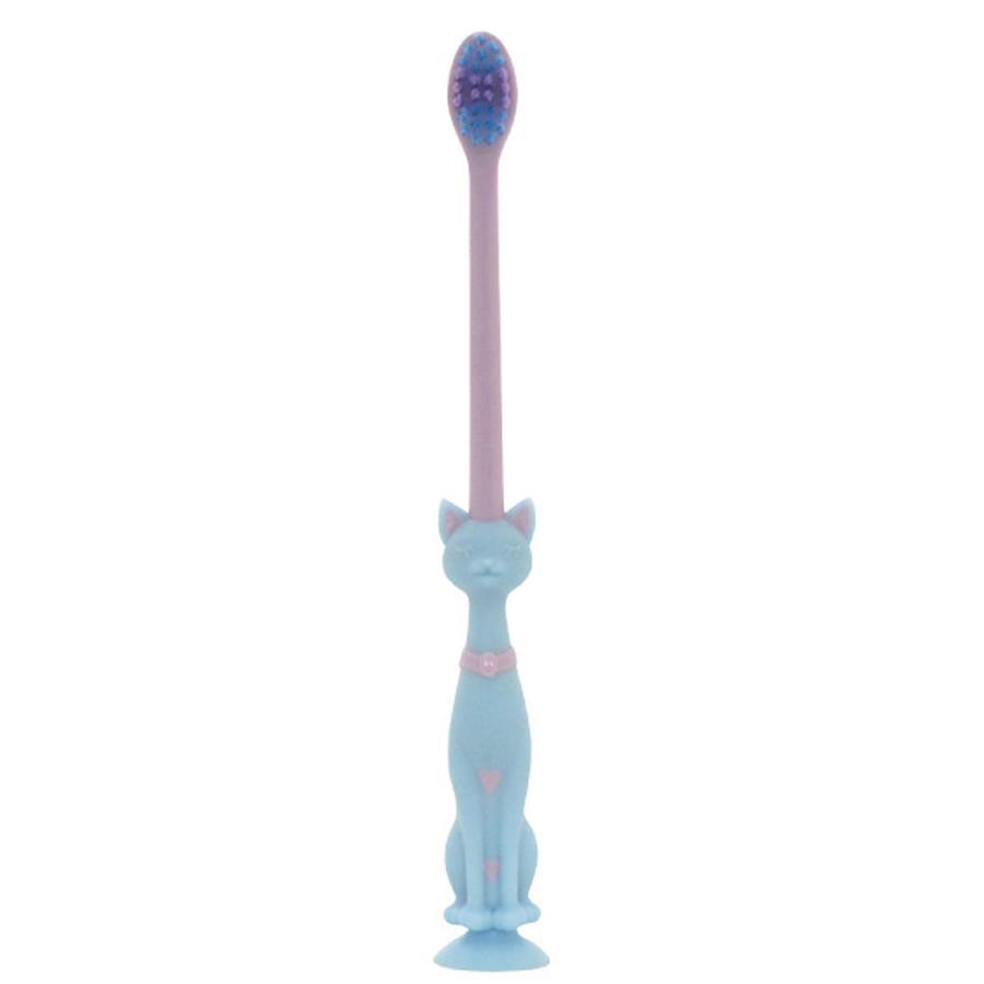 足の吸盤がぴたっとくっつく衛生的でかわいいねこちゃんの歯ブラシです。●かわいいデザインなのでお子様や女性へオススメの歯ブラシです。●便利なキャップ付き。●くっついて倒れないので、洗面台の場所をとりません。●ラバー加工で滑りにくく手にやさしいハンドル。●奥歯までキチンと届いて磨きやすいコンパクトヘッド。●色:ペールブルー。