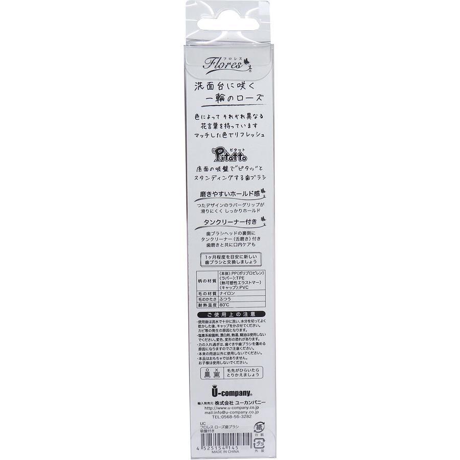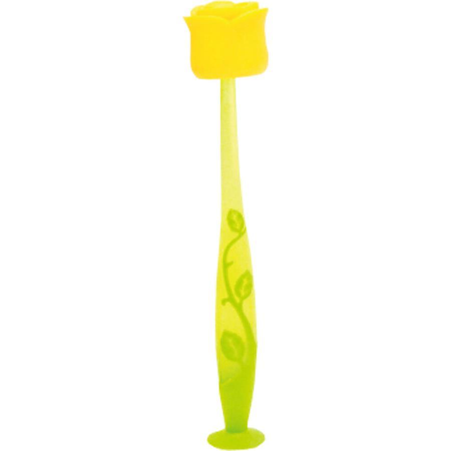 鮮やかなローズが洗面台に咲き誇るロマンティックな歯ブラシ♪キャップ付きで衛生的!吸盤付きで自立する!●底面の吸盤でピタッとスタンディングする歯ブラシ。●磨きやすいホールド感。つたデザインのラバーグリップが滑りにくくしっかりホールド。●タンクリーナー付き。歯ブラシヘッドの裏側にタンクリーナー(舌磨き)付き。歯磨きと共に口内ケアも。●色:ハニーイエロー。黄色のバラの花言葉「友情」。