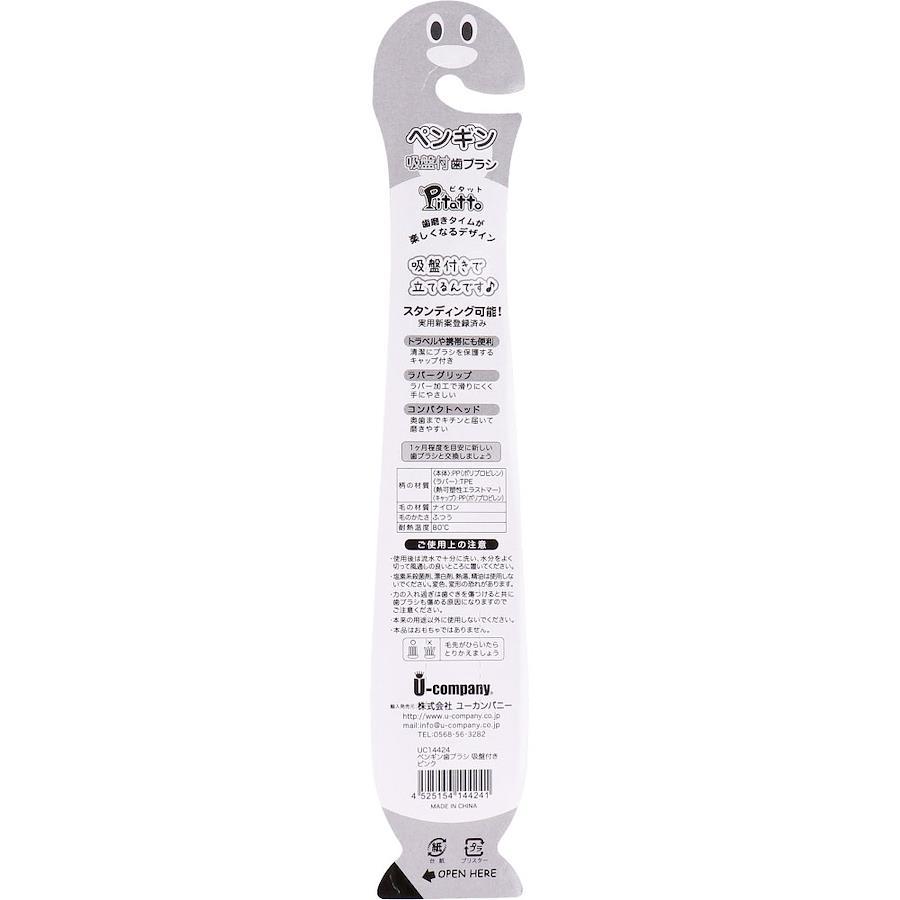 足の吸盤がぴたっとくっつく衛生的でかわいいペンギンの歯ブラシです。●かわいいデザインなのでお子様や女性へオススメの歯ブラシです。●便利なキャップ付き。●くっついて倒れないので、洗面台の場所をとりません。●ラバー加工で滑りにくく手にやさしいハンドル。●奥歯までキチンと届いて磨きやすいコンパクトヘッド。●色:ピンク。