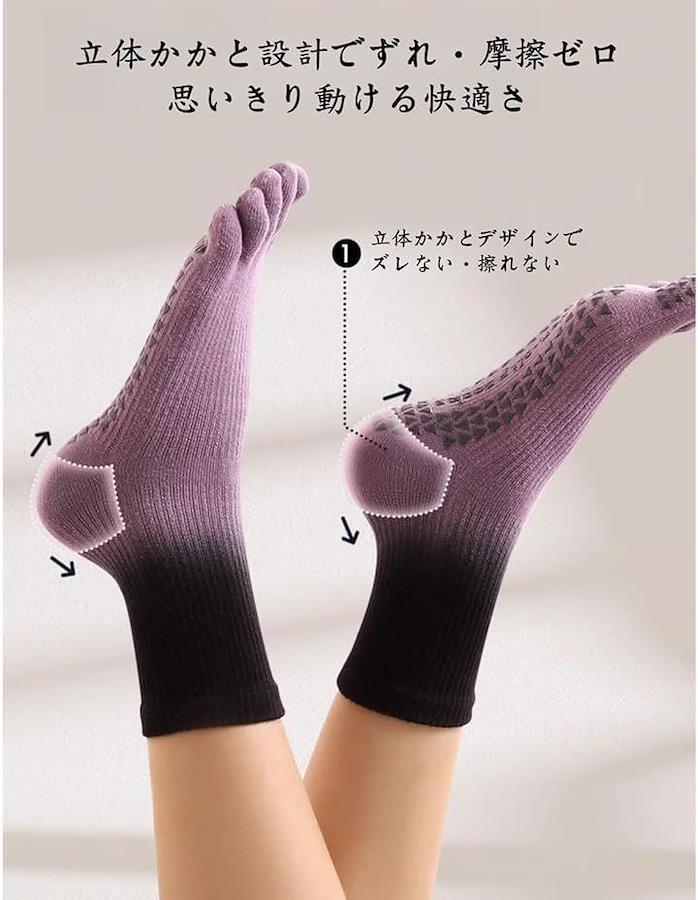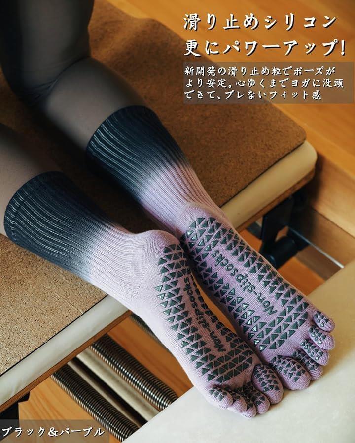 さらに各指先まで独立した滑り止め加工で、従来のヨガソックスよりグリップ力や安定性がアップ。