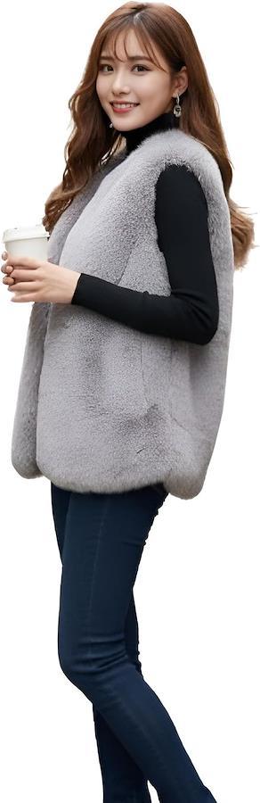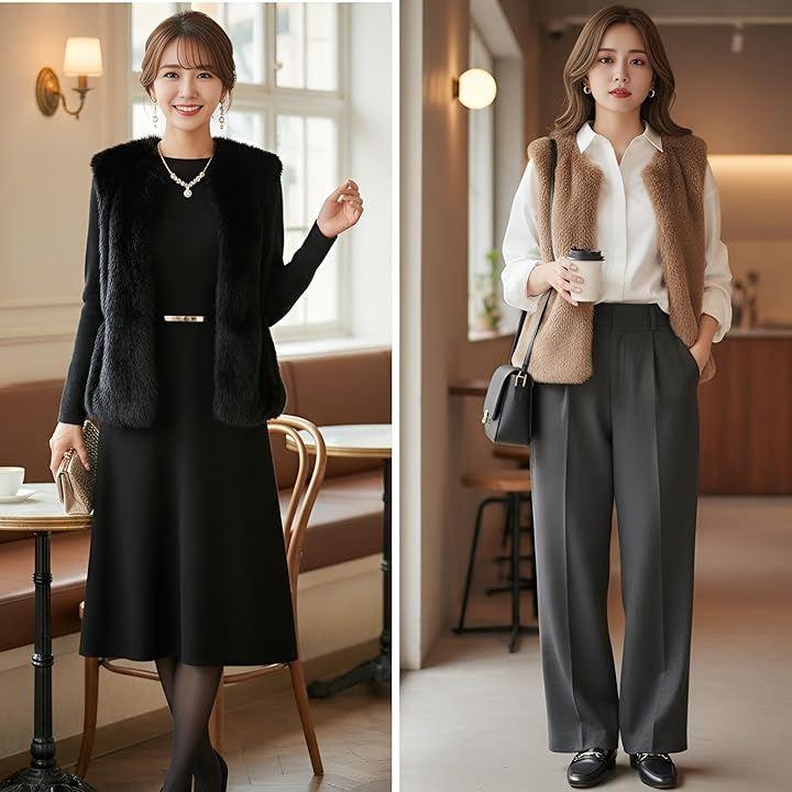 軽くて柔らかなファーベストが優しく包み込み、着るだけで上品な印象になるレディースファーベスト。。