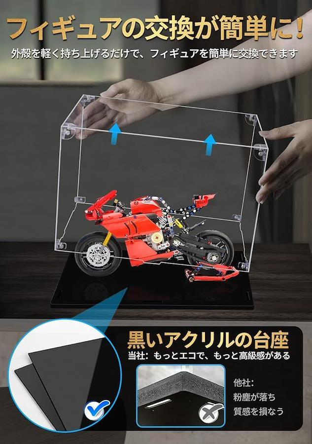 フィギュアボックスを軽く持ち上げるだけで、簡単に展示品を入れたり取り出したりすることができ、古いタイプの分解しなければ展示品を交換できないという欠点が改善されました。