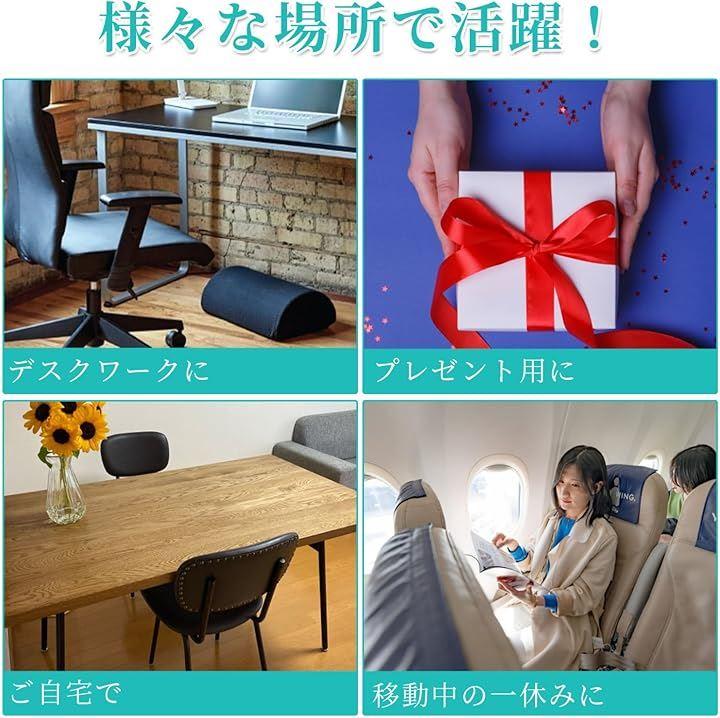 「様々なシーンで活躍」座っている際の足置きとしてはもちろんのこと、飛行機やバスなど長時間の移動の際の足台代わりに、足首をのせて足枕に、背中にあててランバーサポート代わりにと使い道様々。