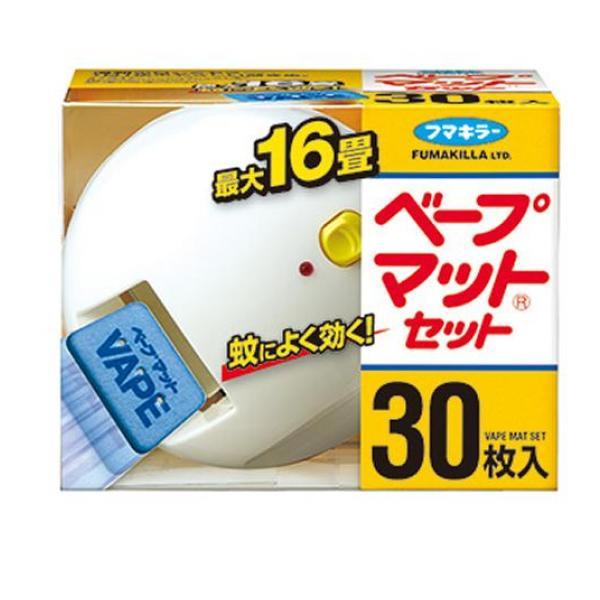 製品の特徴●フマキラー ベープマットセット●防除用医薬部外品●16畳の広い部屋にも使える!信頼のロングセラー「ベープマット」が、より広いお部屋で使えるようになりました。●約12時間効きめ持続●環境に考慮する現在では、必要以上の薬剤を蒸散しない蚊とりマットタイプの持つよさがふたたび見直されています。メーカー調査によると、ベープマットの愛用者に、50代以上と同じくらいに、20代がいることがわかりました。便利に慣れたはずの若い世代に、「安心」が受け入れられているようです。●電源コード付き(長さ約1m)●セット内容:蚊とり器具1個、ベープマット30枚●販売名:フマキラー殺虫A27