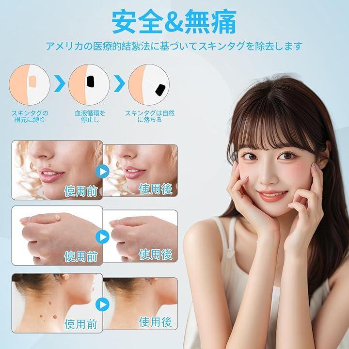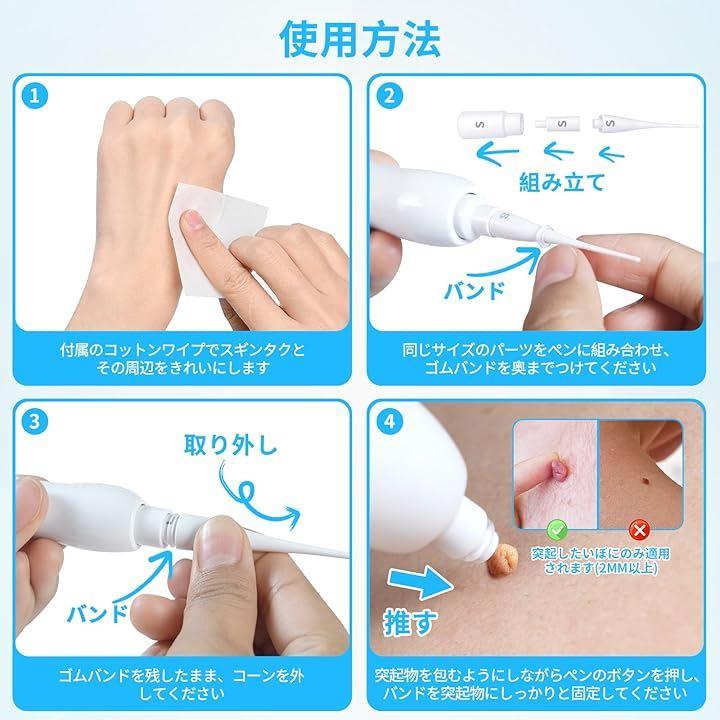 「簡単に装着だけ」:当ツールは高い効率を誇り、永久的な傷跡や刺激を残すことなく、小型から大型(2mmから9mm)のイボに対応しています。