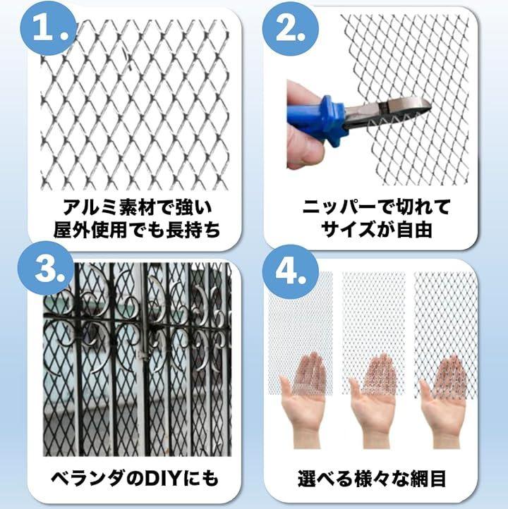 鉄製メッシュに比べて錆びにくく、軽量で扱いやすいため、フロントグリルやエアロパーツなどへの長期的な使用にも適しています。