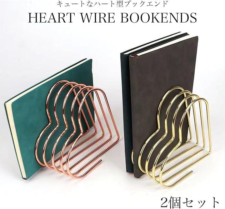 「商品説明」キュートなハート型デザインが目を引く、ワイヤータイプのブックエンド2個セット。