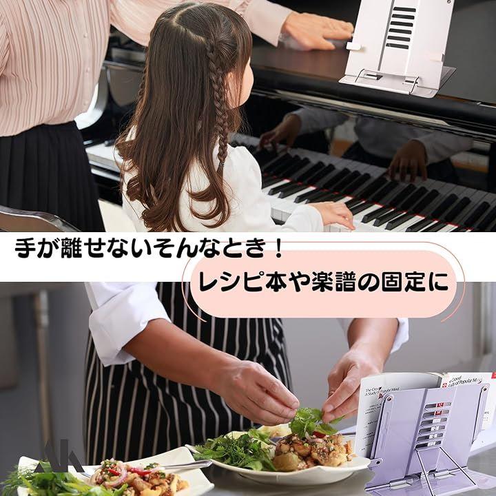 アームを使ってページをしっかりと固定できるので、料理中にレシピ本を持つ手間や、楽譜をめくる手間がなく、両手を自由に使うことができます。