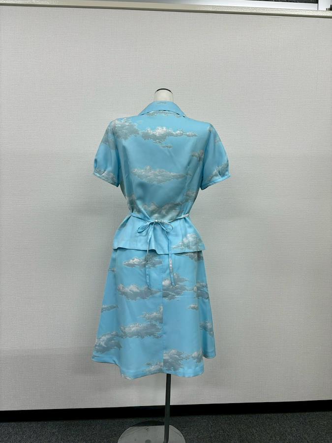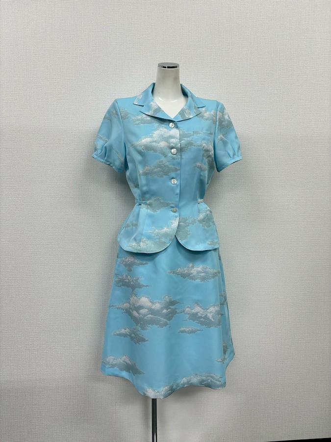 「素材・サイズ・お手入れ方法」★ブラウス:ポリエステル100%(手洗い)サイズ9号:バスト97㎝,肩布39㎝,着丈52㎝,袖丈20㎝★スカート:ポリエステル100%(手洗い)サイズ9号:ウエスト65㎝,ヒップ98㎝,スカート丈55㎝製造工程の関係で商品には±2%のサイズの許容範囲がありますのでご了承ください。写真画像は、お使いのモニター設定やお部屋の照明等により実物と色味や質感は多少異なって見える場合がございます。