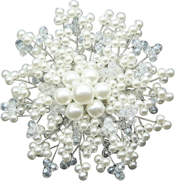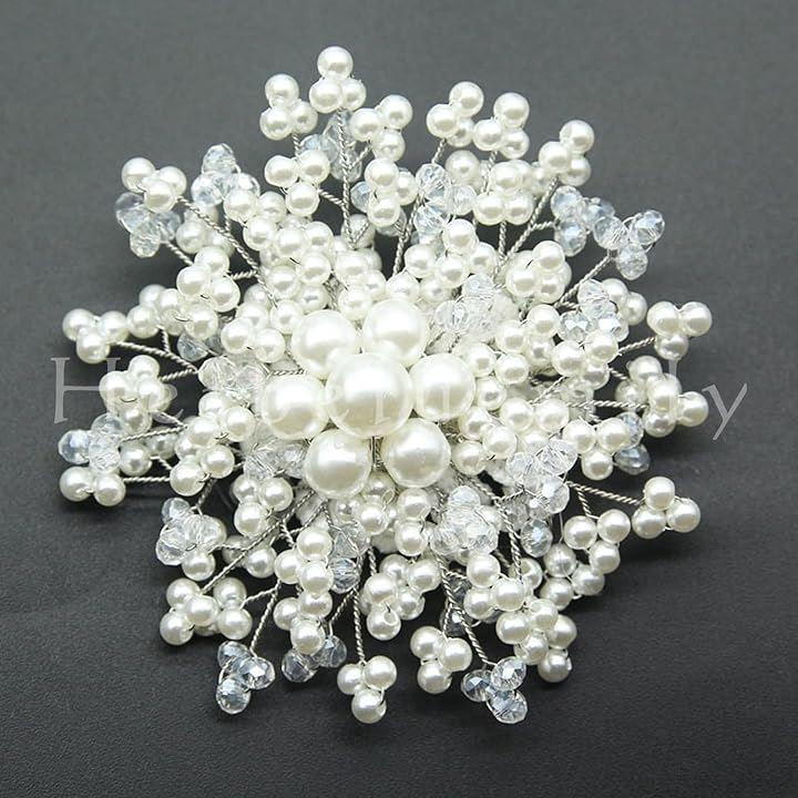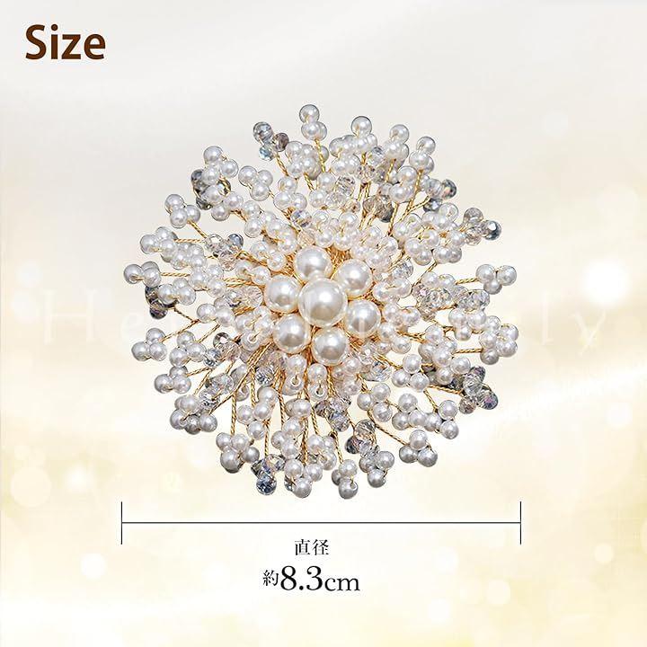 上品なパールと繊細なビーズ装飾がエレガントな印象を与え、シンプルながらも存在感のある仕上がりになっています。