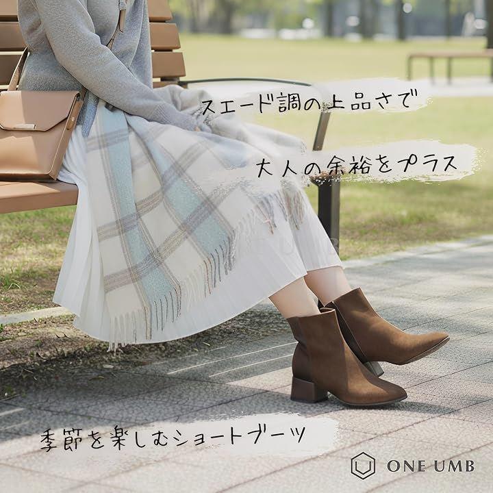 「上品なスエード調デザインで秋冬コーデを格上げ」 落ち着いたスエード調素材が高級感を演出するショートブーツ。