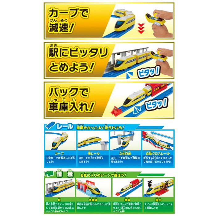 カーブ前での減速、ホームにピッタリ停車、バックで車庫入れなど、運転士さん気分で楽しく遊べます。