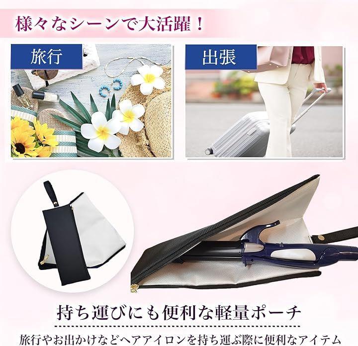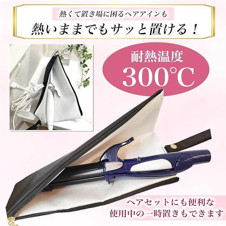 *耐熱性300℃のヘアアイロンケース 使用後の熱いアイロンやコテを冷却を待たずにすぐにしまえる便利なアイテムです。
