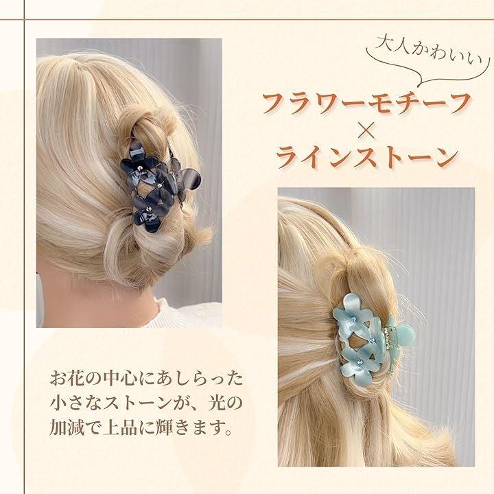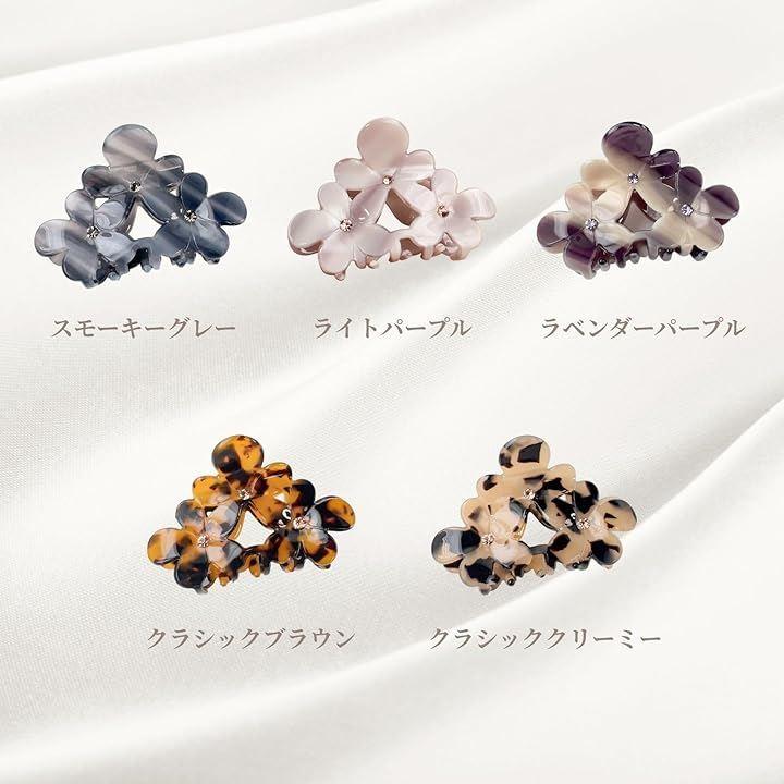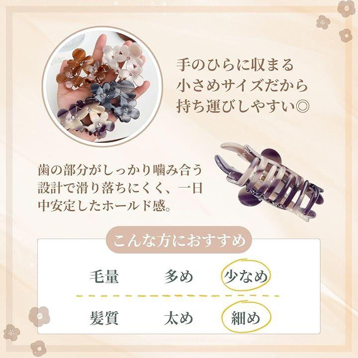 「持ち運びラクラク。小さめフラワーヘアクリップ」手のひらサイズでバッグにもすっきり収まるコンパクト設計。