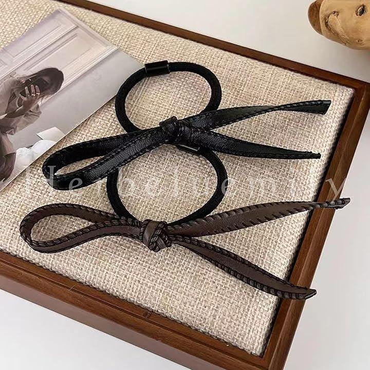 「商品仕様」ヘアゴム:外径5cm レザーリボン:約14cm