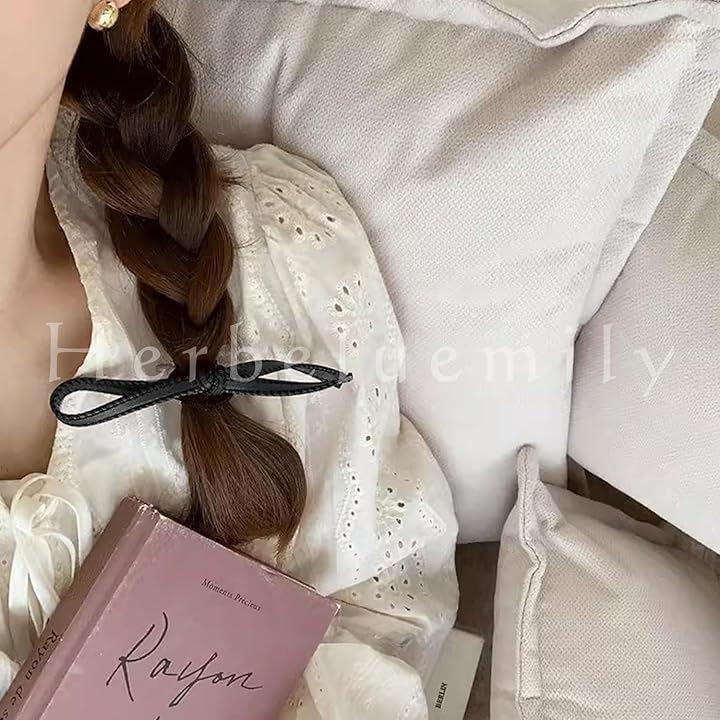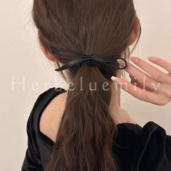 レザー調の上品なデザインのリボンだから、これ一つでいつものまとめ髪がエレガントに。