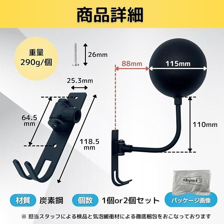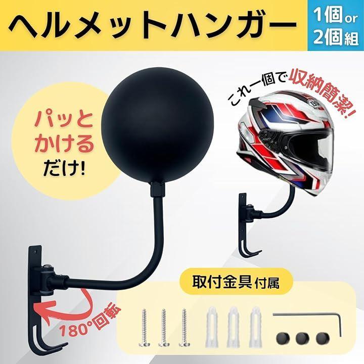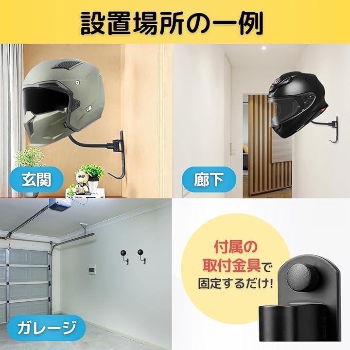 バイク用を初めとしたヘルメットをそのまま引っ掛けられる、壁掛け式のヘルメットホルダーです。シンプルなブラックカラーのため、玄関や廊下、ガレージなどさまざまな場所でお使いいただけるヘルメットスタンドです。