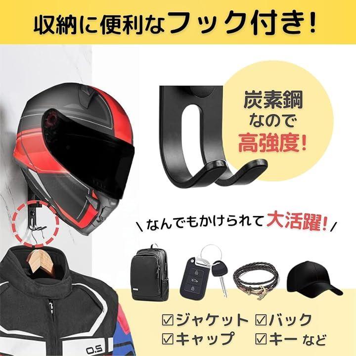 また、ダブルのフック付きでヘルメットだけでなく、鍵やジャケットなどをそのまま引っ掛けられるラックとしての機能もあります。