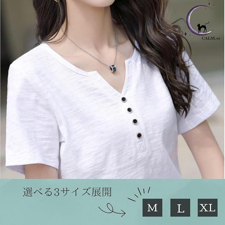 ・春夏秋のデイリーコーデに欠かせない、やわらかい綿100%のVネックトップスで快適な着心地を実現。