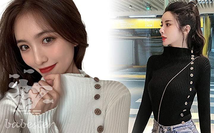 [ベイブスター]レディースリブニットセーターカットソートップスロングスリーブB438