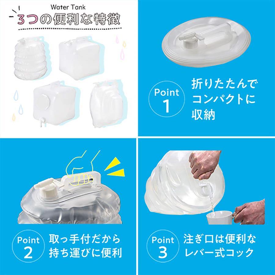 アウトドア、レジャー、スポーツなど様々なシーンで使えるウォータータンク折り畳み式のため収納に場所を取りません。コンパクトで持ち運びも楽々!災害時には水の確保、保管に役立ちます。防災からアウトドアまでライフスタイルに応じて使える!