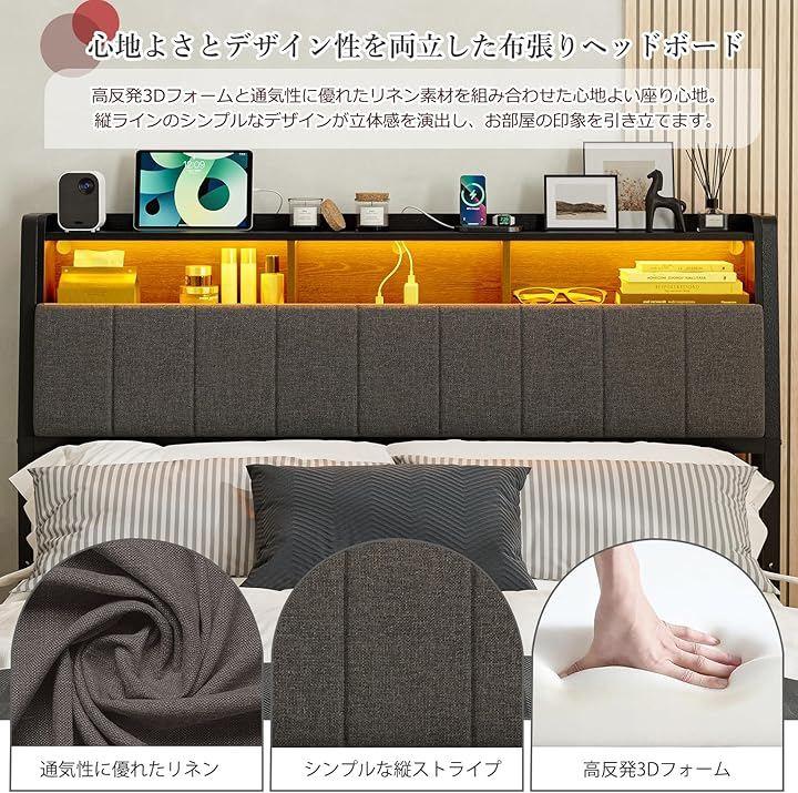 「心地よさとデザイン性を両立した高級感あふれるヘッドボード」高密度で適度な反発力を持つ3Dフォームが、背部をしっかり支えながらも、柔らかく包み込むような座り心地を実現。