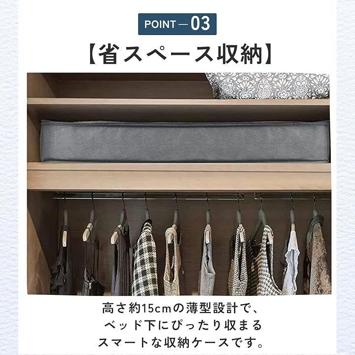 「省スペース収納」高さ約15cmの薄型設計で、ベッド下にぴったり収まるスマートな収納ケースです。