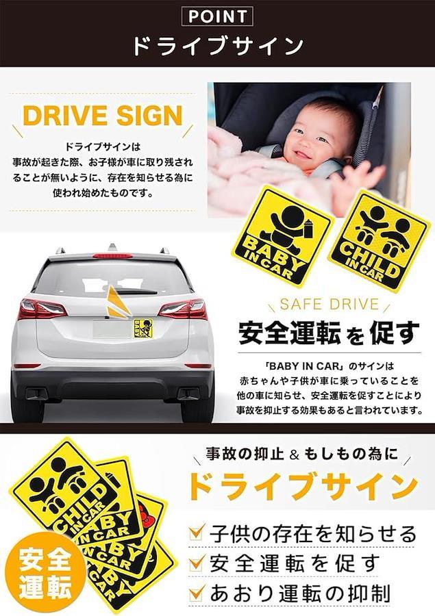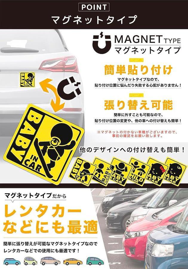 「BABY IN THE CAR」の文字で、車内にお子様がいることを周囲に知らせます。