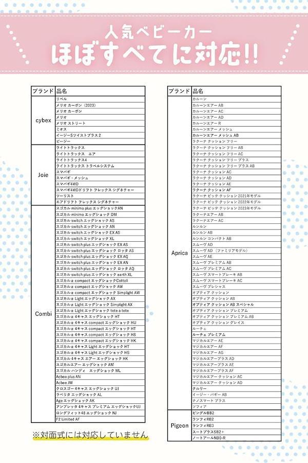 「商品仕様」ほぼ全てのA型、B型の背面式ベビーカーに装着可能なサイズになっています。