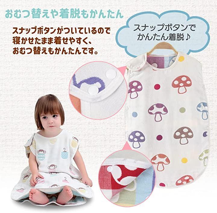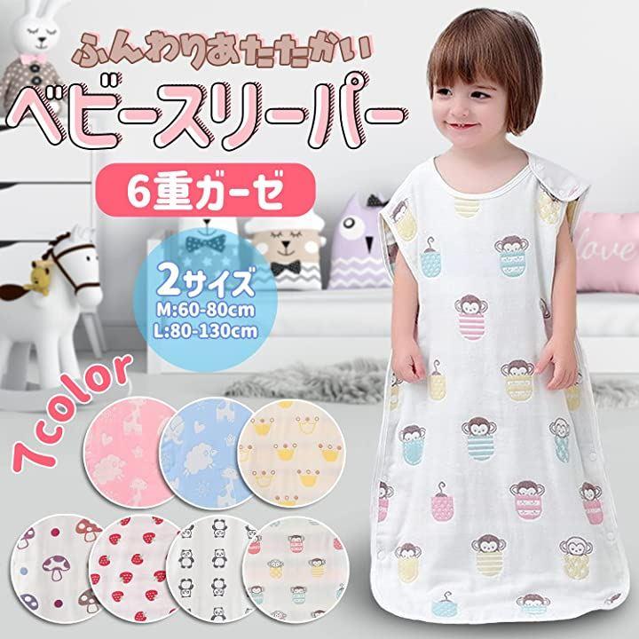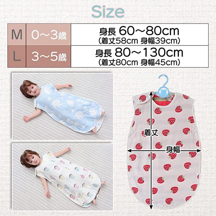 「商品仕様」 ・size:Mサイズ 身幅約 40cm,着丈約 60cm Lサイズ 身幅約 45cm,着丈約 80cm ・年齢:新生児~4歳位(お子様の体格により変わります) ・素材:綿 100% ・どの柄にも、右肩に2つボタン、胴体部分の左右に3つずつボタン、股下部分に1つボタンがついています。