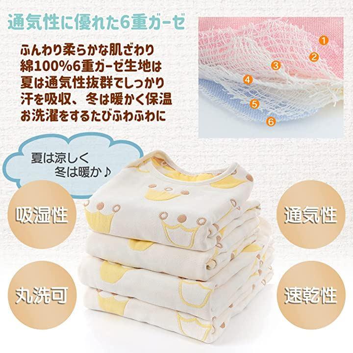 v通気性に優れた6重ガーゼ ふんわり柔らかな肌触り綿100%6重ガーゼ生地は夏は通気性抜群でしっかり汗を吸収、冬は暖かく保温お洗濯するたびにふわふわに