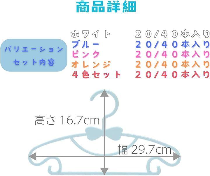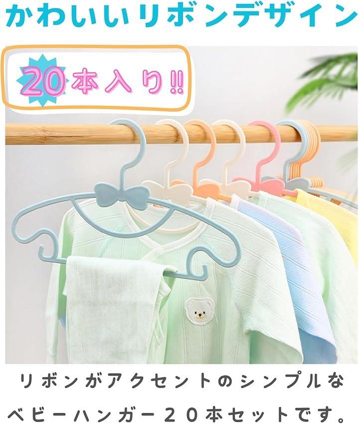 「かわいいリボンデザイン20本セット」かわいい服にはかわいいハンガーを組み合わせましょう。パステルカラーとリボンデザインが可愛らしくお洗濯が楽しくなります。