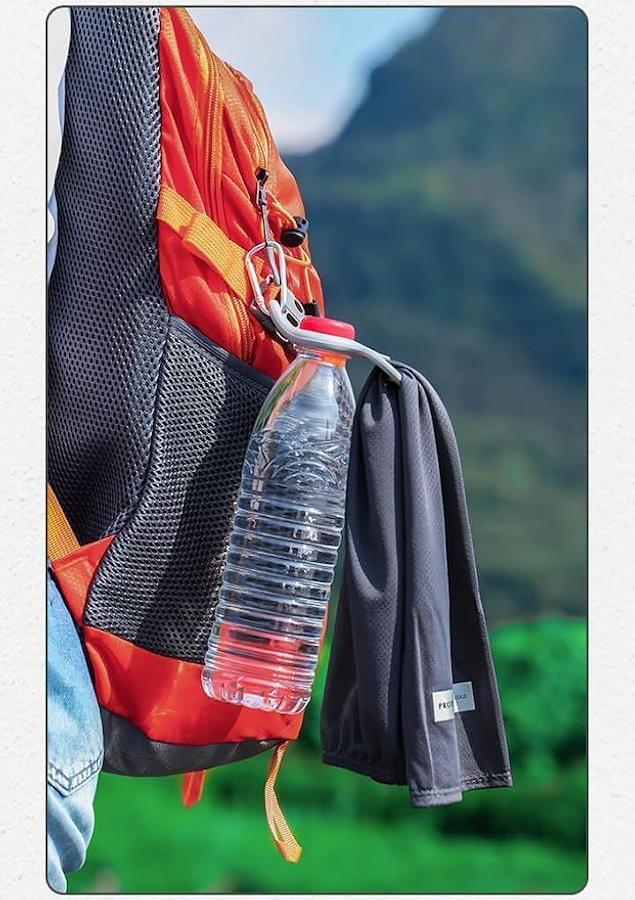 「便利な持ち運び」このペットボトルホルダーとタオルホルダーのセットは、アウトドア活動での持ち運びを簡単にします。