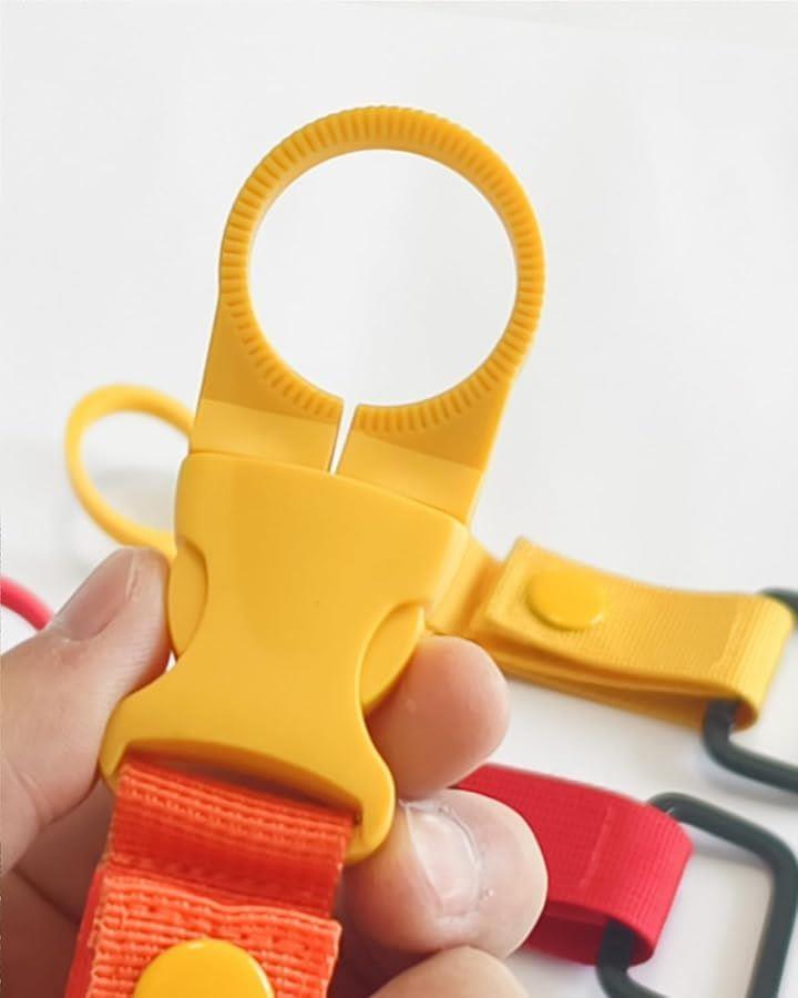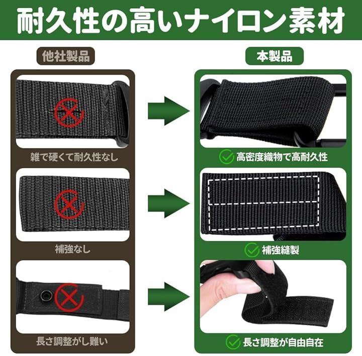 「トリプルセキュリティ構造」 航空機用アルミ合金カラビナx耐摩耗テープx強化樹脂ボタンの三位一体設計。