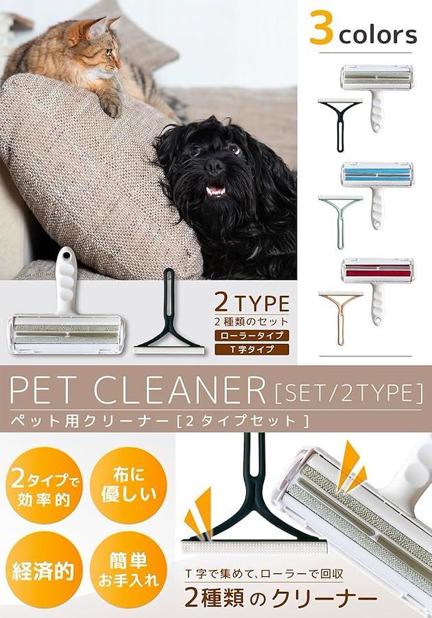 「ペットの毛取りセット。」 ペットの抜け毛やホコリを簡単に取り除けるT字クリーナー&ローラーセット。クリーナーで毛をかき集め、ローラーで回収することで、布製品やカーペット、ソファ、車内もスッキリ清潔に保てます。