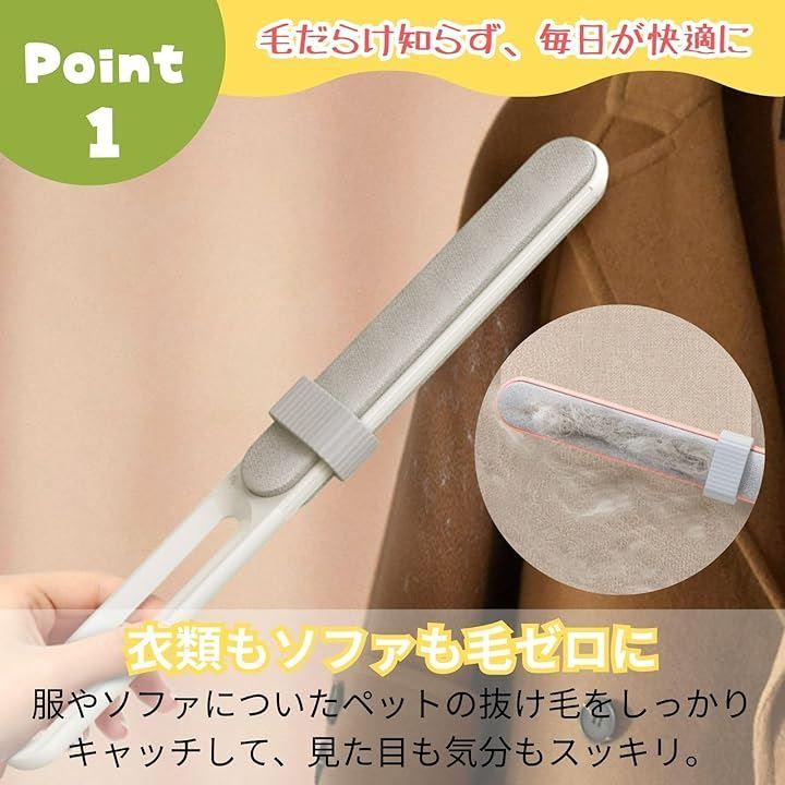 「超密着ブラシで繊維の奥までキャッチ、衣類もソファも毛ゼロに」短いペットの毛や抜け毛も逃さない高密度ブラシ。