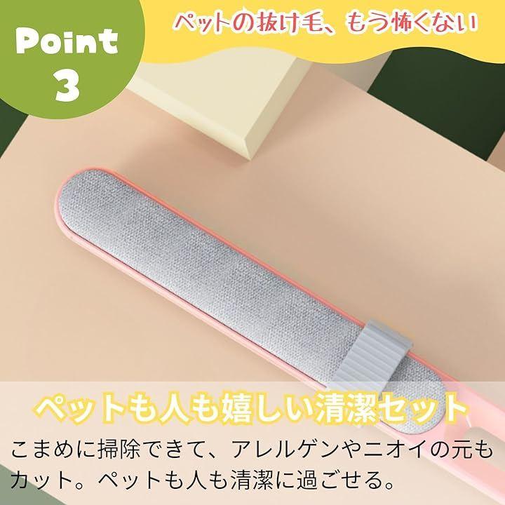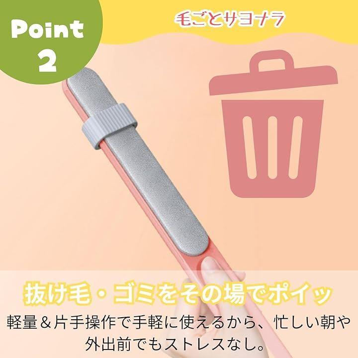 「ペットも人も嬉しい清潔セット:使いやすいデザイン」毛を丸めてくれるクリーナー付きで、清潔に回収可能。