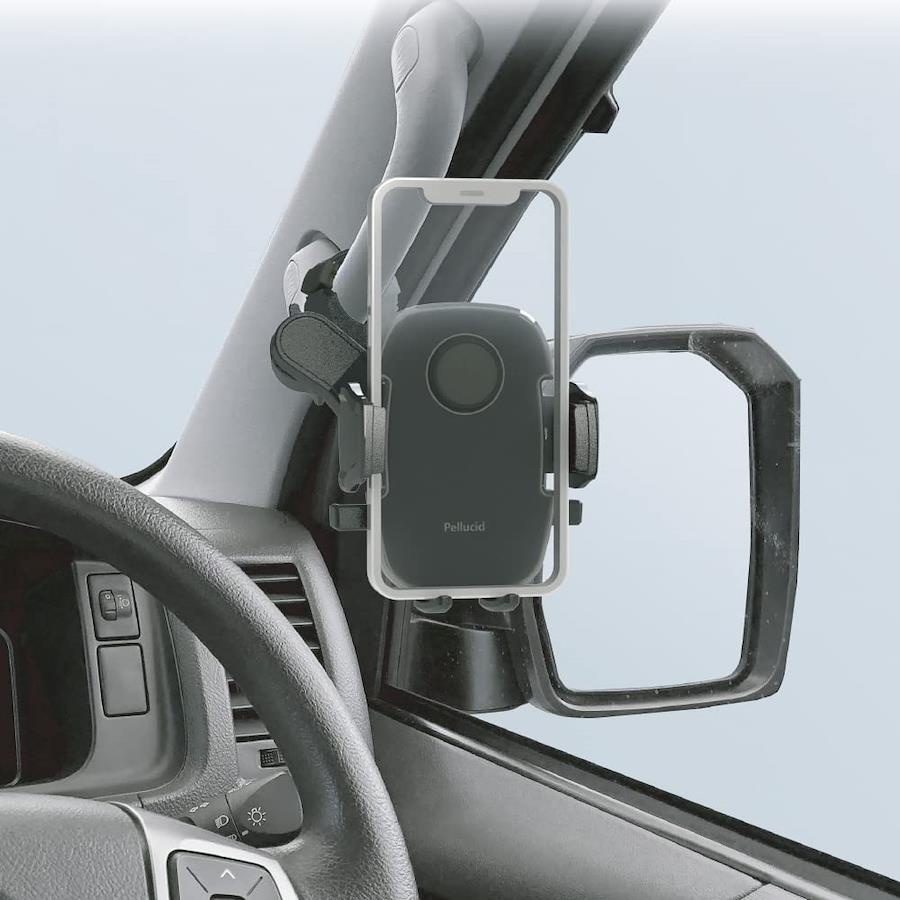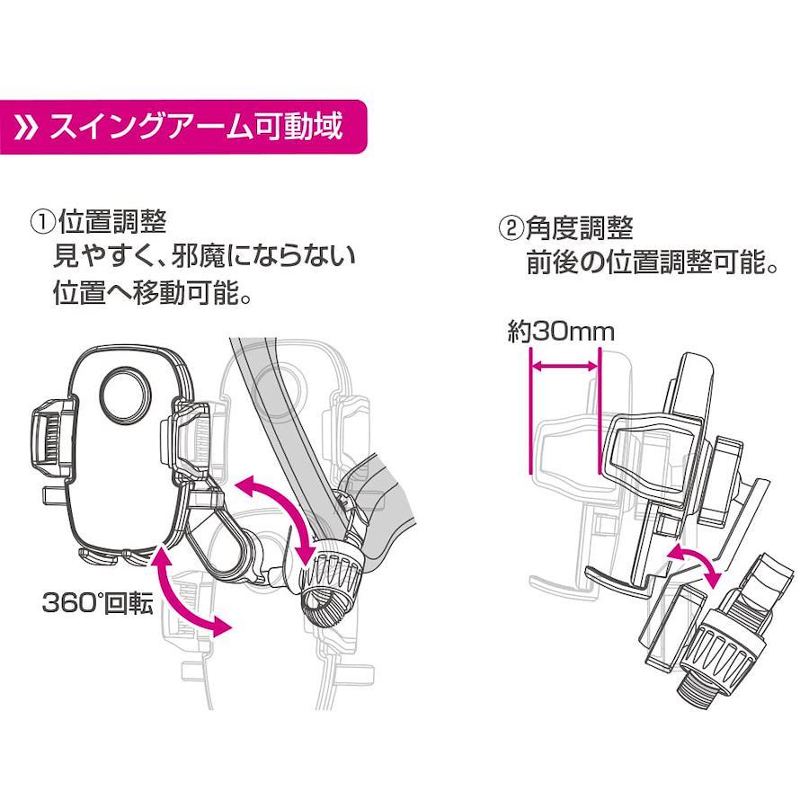 スマホを押し当てるだけのワンタッチ開閉スマホホルダーです。手帳型ケースにも対応。サイドレバーを少し押すだけで、スマホの取外しが可能です。スイングアームで360°回転。見やすく視界を妨げない位置に調整可能です。ベルトでアシストグリップに巻きつけしっかり固定出来ます。