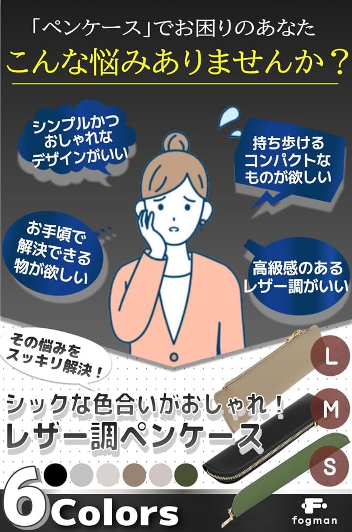 「商品特徴」(1)シックな6カラー:落ち着きのあるおしゃれなカラー展開/(2)コンパクトに収納:かさばらないコンパクトデザイン/(3)3サイズをご用意:用途に合わせて3サイズから選べる/(4)高級感あるレザー調:レザー調のエンボス加工を施したポリウレタン製