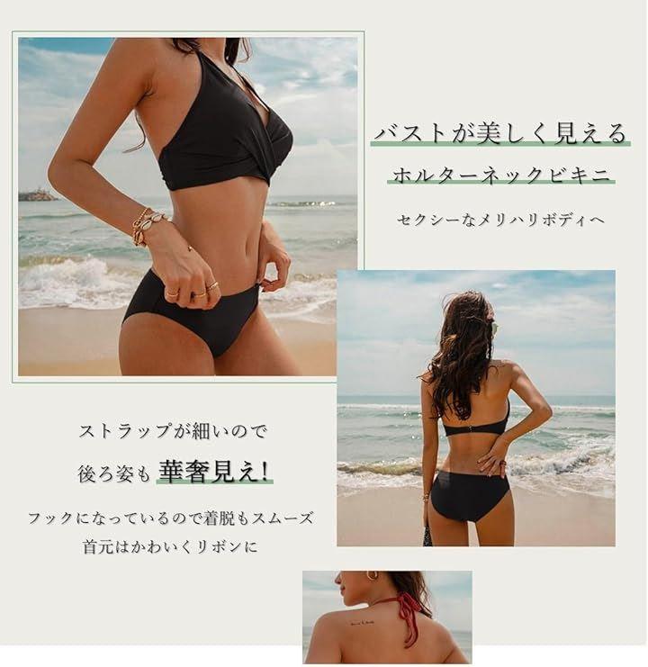 「バストを美しく引き立てるホルターネックビキニが登場。」ホルターネックxクロスバンドデザインで美バストを演出。